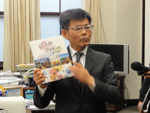 杨秋兴拿着他高雄县长任内政绩专书