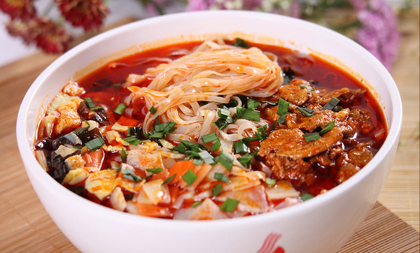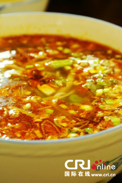 豆花泡馍:原料豆腐脑、豆浆、馍、咸菜、食盐、辣椒油。用浓汁豆浆加佐料将馍片和豆花滚汤烧煮烩成一碗。