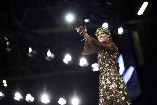 巴黎举行巧克力博览会 女模身着艳丽巧克力礼服