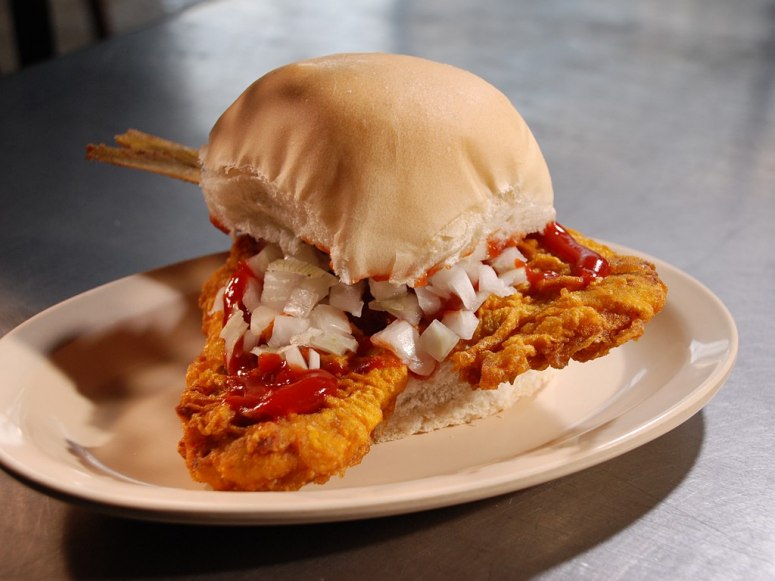 这种美味的三明治是由一条鲷鱼和柠檬、芹菜一起煎炒,再将鲷鱼压至块状,配以洋葱块,番茄酱和塔塔酱制作而来的,便宜又好吃。