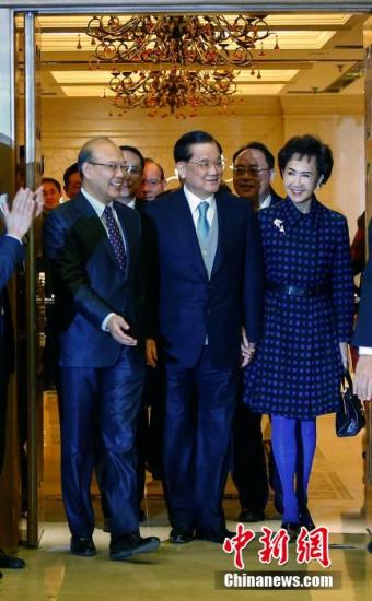 2月19日,北京大学为中国国民党荣誉主席连战举办名誉教授授予仪式,完成该校2005年颁赠名誉教授给连战的程序。图为北大校长王恩哥(左)陪同连战夫妇入场。中新社发 张浩 摄