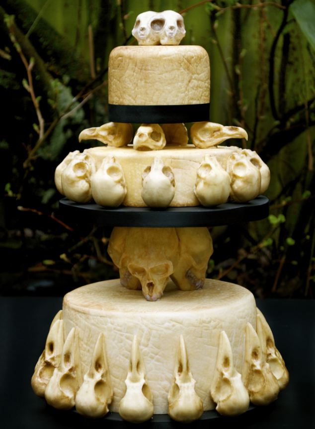 英国伯明翰的女子安娜贝尔·德·韦坦恩(Annebel de Vetten)经营了一家名为“巫师厨房”的面包店,专门出售逼真的鸟头盖骨蛋糕、毛茸茸的猪头蛋糕等令人惊悚的糕点。