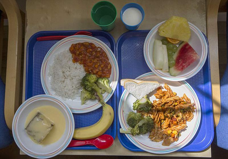 报道称,世界各地大多数国家的学校都会给学童一份健康的午餐。也有较少的一些学校卖盒饭和不健康的小吃,如在马里和巴基斯坦的学校,有售卖油炸甜甜圈,在约旦河西岸地区的学校卖糖果,法国的学校有卖油炸鸡块等。