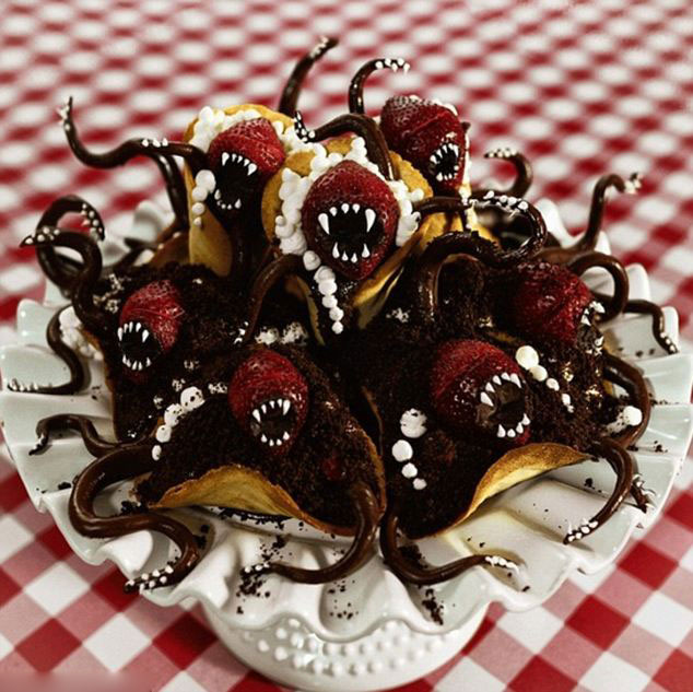 据英国《每日邮报》7月4日报道,美国女摄影师克里斯汀麦康内尔外形靓丽、才华横溢,拥有着天使身材的她还拥有一双巧手,其为烘焙出来的甜点打造出另类造型,令人心生恐惧。 这位32岁的女子在照片分享网站上拥有7万多粉丝,其因酷似50年代家庭妇女的风格、古怪的烘焙作品及令人吃惊的幽默感闻名。麦康内尔从各处汲取灵感,比如那个模样吓人的糖果曲奇,其原型是《异形》里的生物;那个造型愤怒的巧克力草莓蛋糕叫做“甜点怪兽”。她说,自己有很多偶像,比如蒂姆·伯顿、文森特·普赖斯、阿尔弗雷德·希区柯克,还有宝拉·迪恩。她说:“我非常迷恋40年代至60年代的电影风格,但是我喜爱80年代创造的那种蹩脚喜剧。所以我烘焙时就会把美丽和灵异两种风格结合在一起。” 令人难以置信的是,她是一个训练有素的造型师,以摄影和其他视觉设计为职业,而烘焙只是她的一个爱好。麦康内尔说:“我只是为了朋友、家人和兴趣才烘焙的。这个过程太复杂,若是出售,我甚至不晓得应该如何收费。”