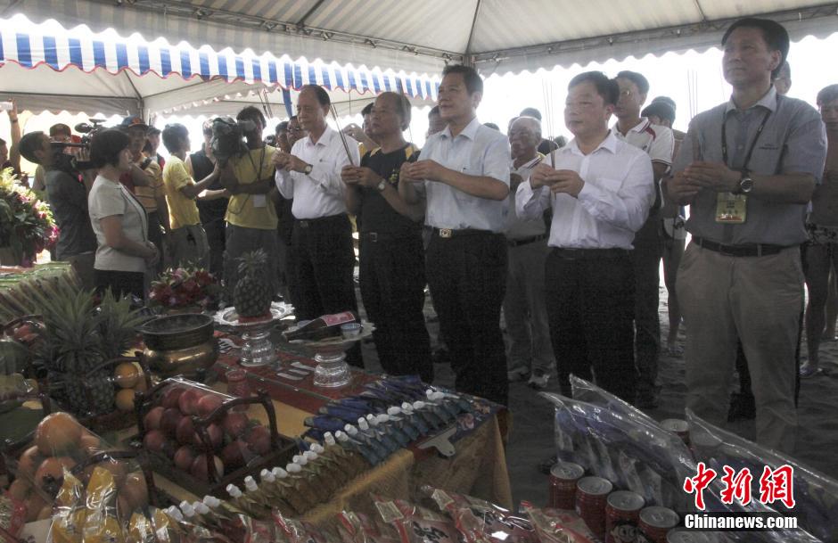 8月18日中午,来自海峡两岸各7名泳坛健将,从台湾新竹南寮渔港下水,游向海峡对岸的福建平潭,开创了泳渡台湾海峡的历史壮举。中新社发 林永传 摄