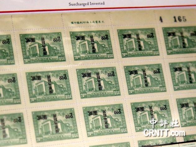这次邮展台湾展出的珍邮品有“上海版飞雁原票全张”,因为国民政府金本位改革失败让物价飞涨,出现邮票上面完全都没有邮票面额。还有“中华民国临时中立”字眼的邮票,为民国初年,中国政坛混乱的最佳纪录。