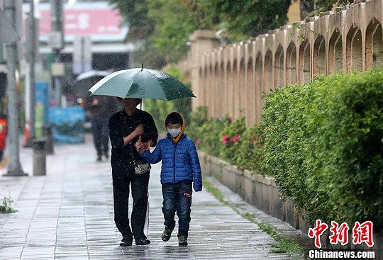 3月26日,台北雨中的行人(资料图)。中新社发 陈小愿 摄