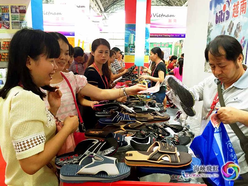 记者发现今天来买鞋的很多都是这样的回头客,他们都是因为平仙鞋经久耐穿的质量慕名而来,不到一天时间,平仙展区已经卖出7、800双拖鞋。平仙拖鞋的销售负责人黄善荣介绍说:“最后一天的销量会比较多!(连续参展)十二届了,(东博会)对我们产品的推广起到了比较大的促进作用,因为我们每年都在同一个位置,现在进到越南馆来的顾客都知道我们这个牌子,因为我们连续十二年都参展,是这个越南馆里参展年数最多的企业,这对我们品牌的树立和宣传是非常有作用的。刚开始来中国的时候,国内市场大部分人是不知道这个牌子的,效果最好的还是参加展会,现在整个中国市场已经有50几个代理商了,拖鞋的销量逐年递增,随着东盟博览会的影响力越来越大,外省的人来得多了之后,平品牌的知名度就越来越大。”