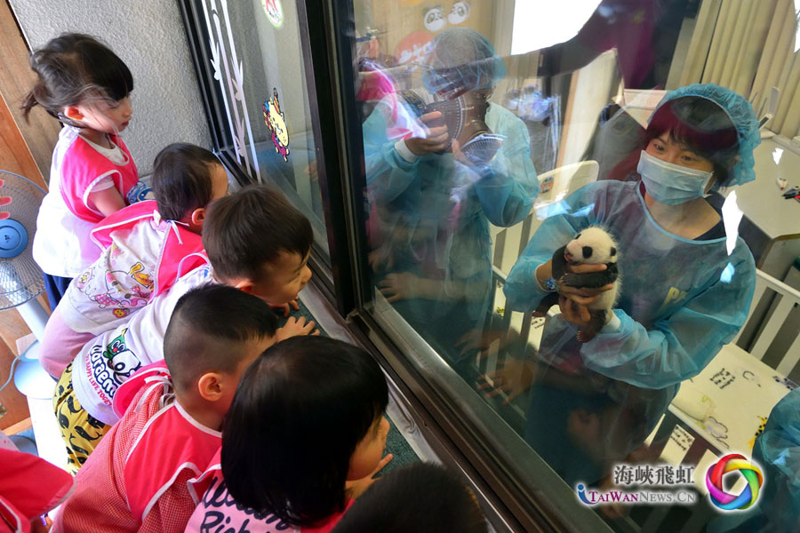 澳门小朋友为双胞胎大熊猫宝宝庆满月