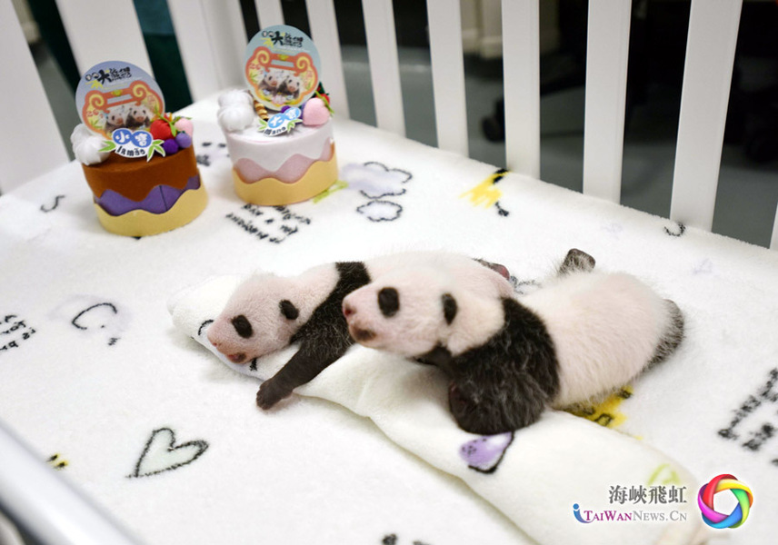 经过母亲“心心”一个月的爱心喂哺及饲养人员的悉心照顾,现在这对大熊猫宝宝体重由刚出生时的135克及53.8克,增加至现在的1010.5克及753.6克,分别增长了7.5倍及14倍。经过兽医的评估后,“大宝”及“小宝”的身体状况良好,已可离开育婴箱,睡在特制的小床上。在外表方面,大熊猫宝宝已由出生时全身的粉红色,渐渐长出大熊猫的最大特征──黑眼圈,而耳朵、手脚和肩带上的毛发亦已变成了黑色。