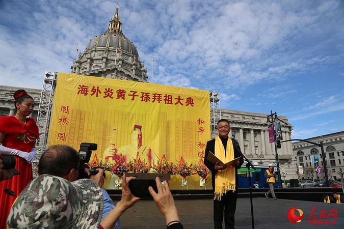 第二届海外炎黄子孙祭祖大典3月19日在美国旧金山市政厅广场举办。祭祖大典以锣鼓喧天、敬献花篮、净手上香、行施礼拜、恭读拜文、高唱颂歌、乐舞敬拜和祈福中华等仪式进行。(人民网旧金山电 韩莎莎)