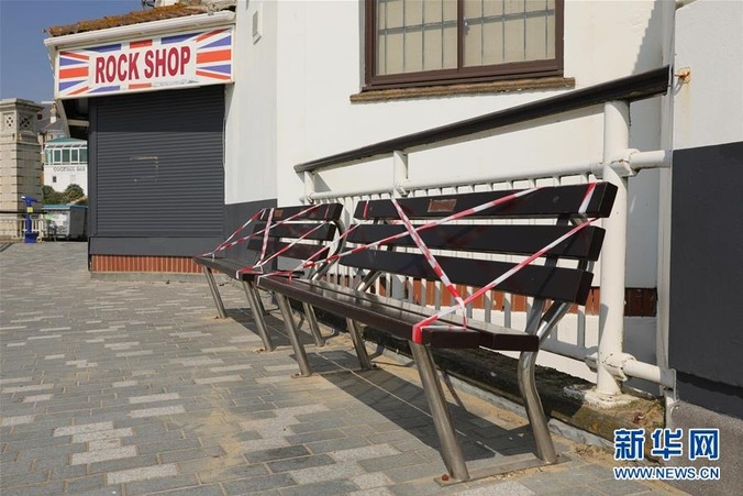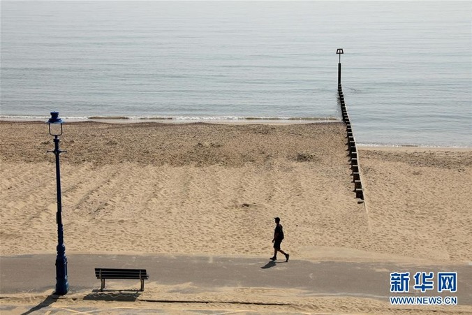 4月11日恰逢复活节假期,英国各地天气晴好,但英国政府要求人们减少不必要出行,旅游地伯恩茅斯海滩与往日相比一片安静。