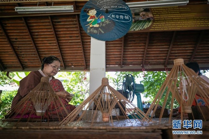 位于泰国清迈市中心以东9公里的博桑伞村,以生产纸伞而闻名。其伞柄、伞骨、伞面都由当地极富经验的伞匠精工打造而成,伞面的图案由手工绘制。大小各异、五颜六色的纸伞置于草地上晾晒,待颜料被风干,一把独一无二的手绘油纸伞就完成了。