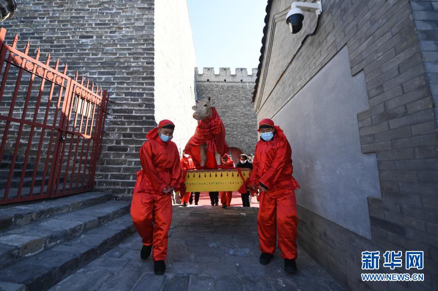 立春将至,北京东城区建国门街道在古观象台举办“风车迎春,鞭打春牛”民俗活动,迎接春天的到来。