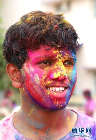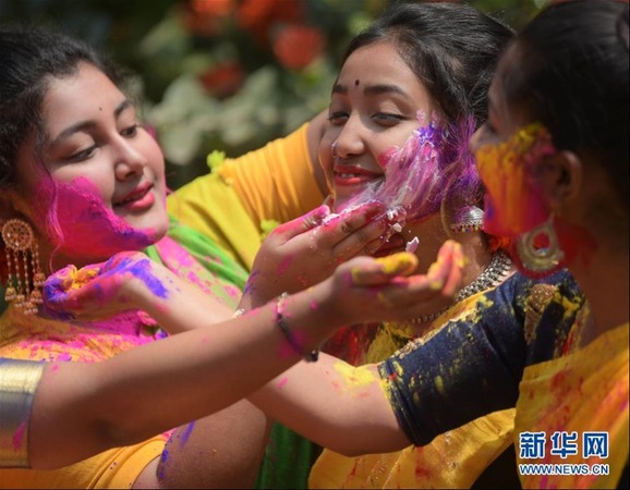 3月28日,洒红节也叫胡里节,人们在节日期间互相涂抹颜料,载歌载舞迎接春天的到来。