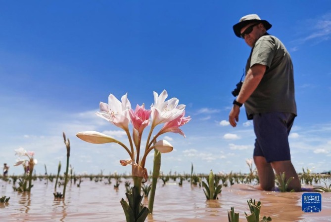 近日,充足的降雨使桑德霍夫农场的百合花海得以重现。该农场位于纳米比亚南部的马耳塔霍赫小镇,这里有一个很少下雨的盆地,里面生长着约700公顷的百合花。只有在雨量充足时,这些百合花才会全部盛开,而花期仅有6到7天时间,错过一次可能会再等好几年才能见到。
