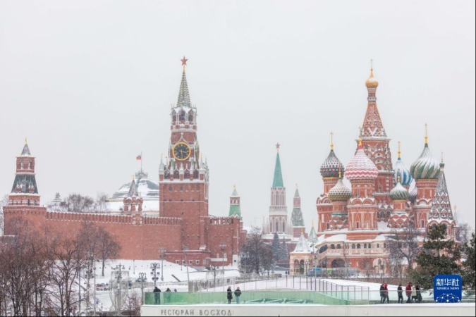 这是1月26日在俄罗斯首都莫斯科拍摄的克里姆林宫和圣瓦西里教堂。新华社记者 白雪骐 摄