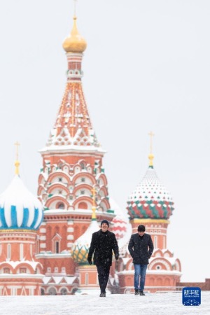 1月26日,两名男子在俄罗斯首都莫斯科红场漫步。新华社记者 白雪骐 摄