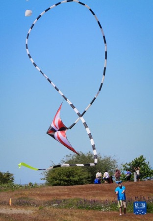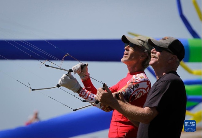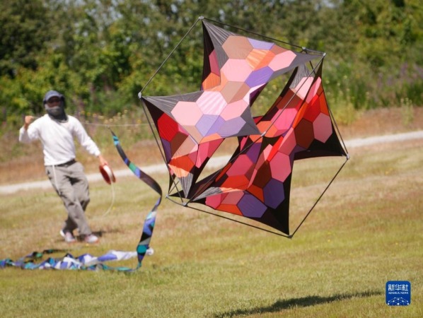 6月25日,在加拿大里士满举行的环太平洋风筝节上,风筝专家展示花式风筝技术。新华社发(梁森摄)