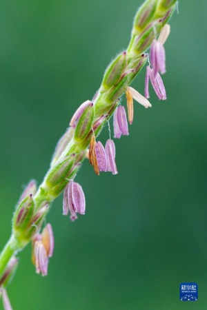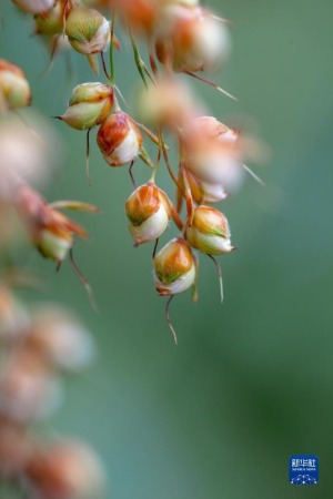 8月20日,在贵州省黔东南苗族侗族自治州从江县刚边壮族乡良田村,颗粒饱满的稻穗上挂着露珠。