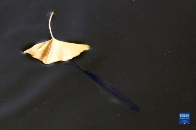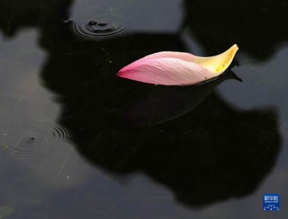 8月16日,在江苏苏州拙政园荷塘间,一片荷花花瓣漂在水面。
