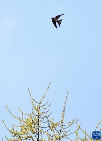 9月4日,在贵州省都匀市,一只昆虫在花间飞舞。 新华社发(肖伟摄)