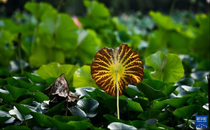 这是9月4日在河北省玉田县拍摄的荷叶。新华社发(刘满仓摄)