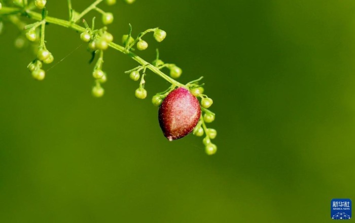 9月2日,在山东省邹平市西董街道,一株植物结出果实。新华社发(高发芳摄)