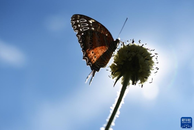 9月3日,在云南省丽江市玉龙县,蝴蝶休憩。新华社发(赵庆祖摄)