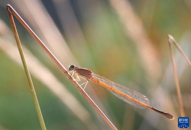 8月25日,在云南腾冲市,一只豆娘停落在草杆上。 新华社发(龚祖金摄)