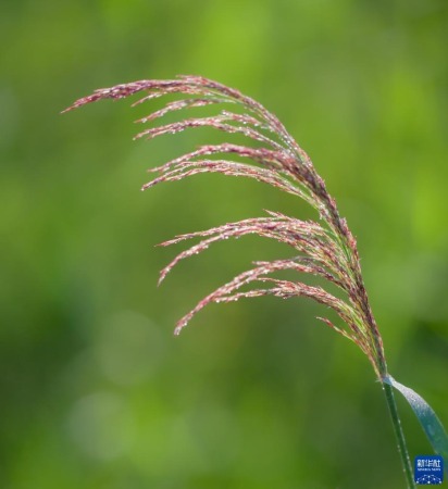 9月4日,在山东省淄博市高青县,芦苇上结满露珠。新华社发(张维堂摄)