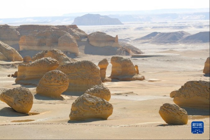 这是10月29日在埃及法尤姆省拍摄的风蚀地貌。新华社记者 隋先凯 摄