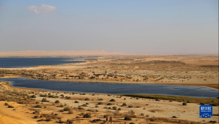 这是10月29日在埃及法尤姆省拍摄的沙漠里的一处湖泊。新华社记者 隋先凯 摄