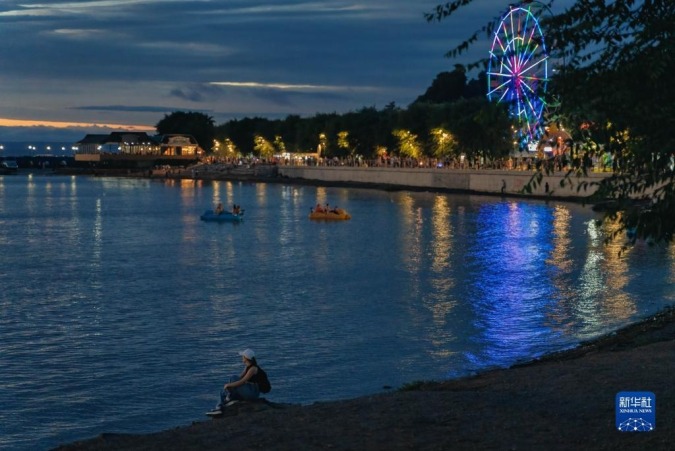 8月16日,人们在俄罗斯远东城市符拉迪沃斯托克阿穆尔湾堤岸上聚会。新华社发(郭飞洲摄)