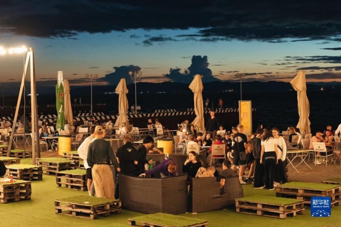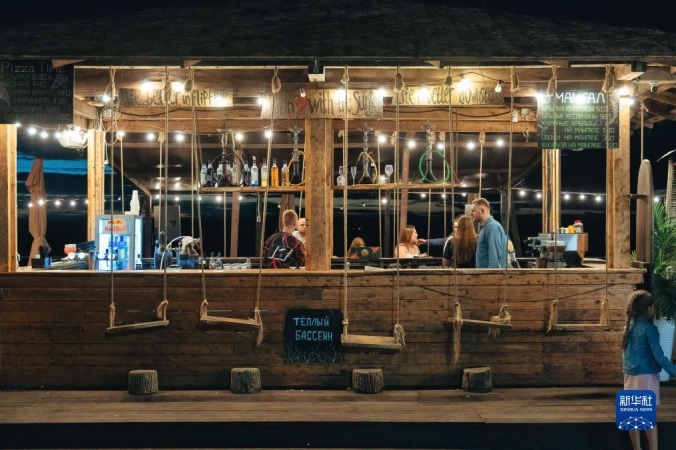 这是8月16日拍摄的俄罗斯远东城市符拉迪沃斯托克阿穆尔湾的露天酒吧。新华社发(郭飞洲摄)