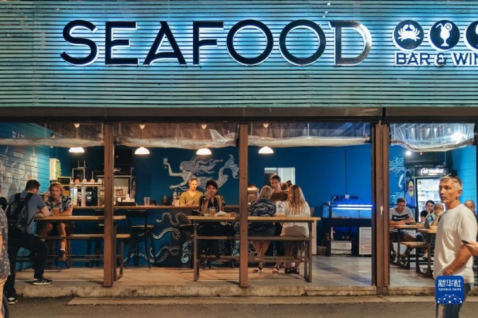 8月16日,人们在俄罗斯远东城市符拉迪沃斯托克阿穆尔湾的一个海鲜餐吧用餐。新华社发(郭飞洲摄)