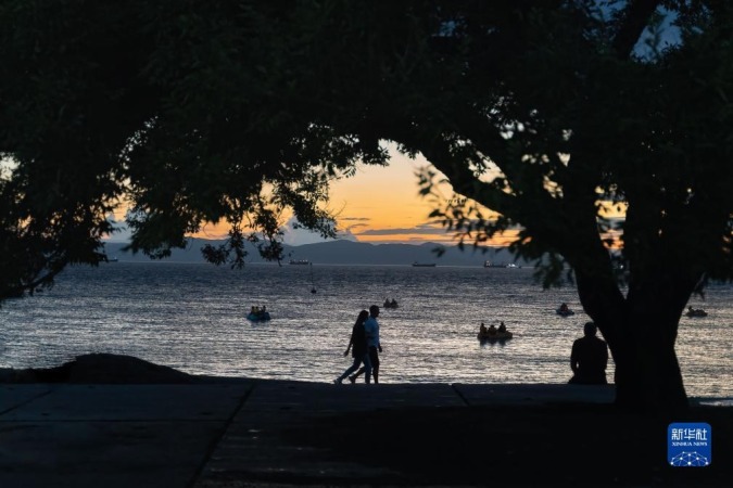 8月16日,人们在俄罗斯远东城市符拉迪沃斯托克阿穆尔湾散步。新华社发(郭飞洲摄)