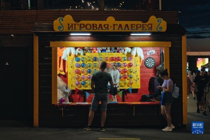 这是8月16日拍摄的位于俄罗斯远东城市符拉迪沃斯托克阿穆尔湾的游艺小摊。新华社发(郭飞洲摄)