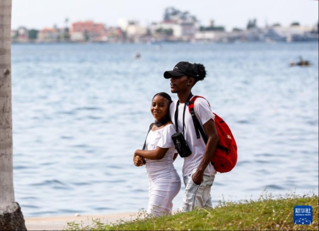 3月9日,在安哥拉首都罗安达,人们在海边散步。新华社记者 李亚辉 摄