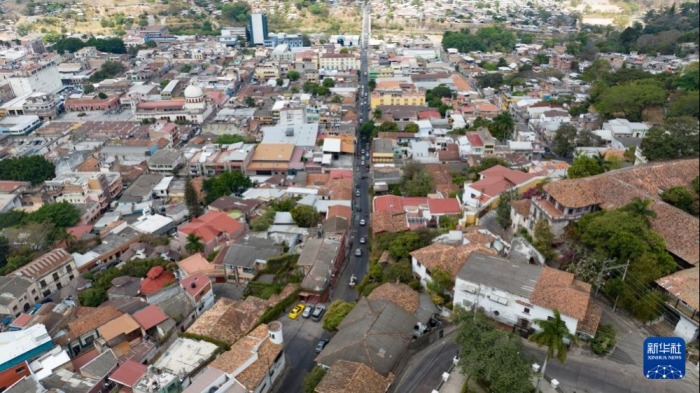 这是3月21日在洪都拉斯特古西加尔巴拍摄的城区一景(无人机照片)。新华社记者 李梦馨 摄