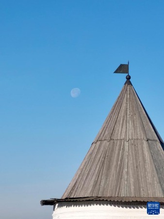 这是10月20日在俄罗斯喀山克里姆林宫拍摄的月亮。新华社记者 赖向东 摄