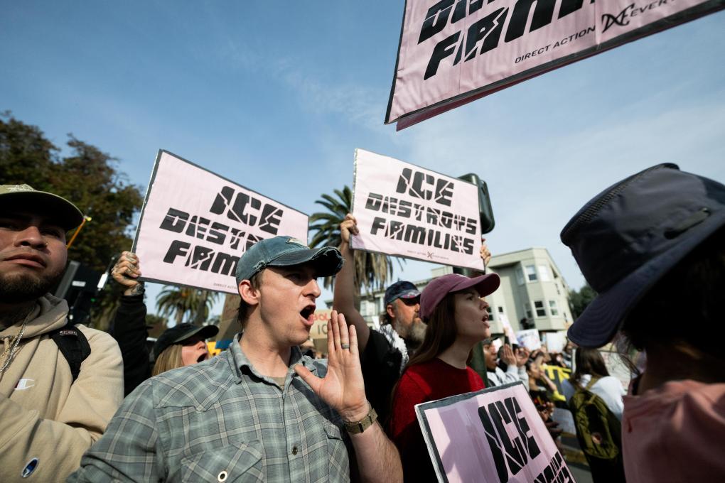 2026年1月30日,人们在美国加利福尼亚州旧金山参加示威游行,抗议特朗普政府暴力移民执法。新华社发(朱子于摄)